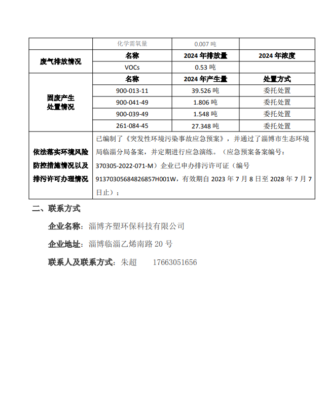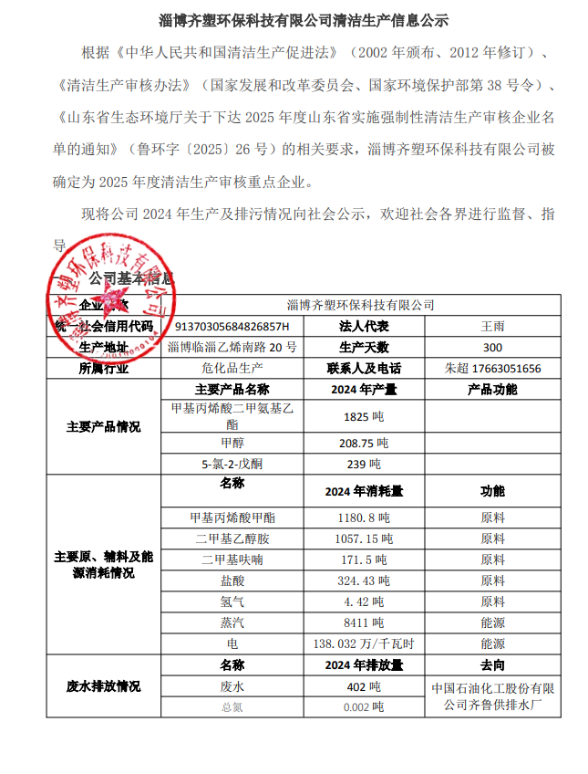 淄博齊塑環(huán)??萍加邢薰厩鍧嵣a信息公示
